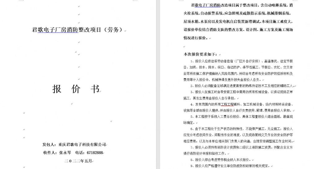 因君歌消防設(shè)施整改,現(xiàn)公開對外招投標(biāo),請有意向的同事或朋友前來競標(biāo)!招投標(biāo)截止時間為:2022年5月12日(星期四)下午17:00前,請將招標(biāo)書以正規(guī)文書形式蓋上鮮章、封箋送至行政辦公室張主任(張永琴)處,以電子版本形式發(fā)送的以及已過投標(biāo)截止日期的,將視為自動棄標(biāo)!投標(biāo)的保證金:10000.00元(大寫:壹萬元整);投標(biāo)前,請將保證金打入公司公共賬戶,凡有意者在5月12日前到現(xiàn)場查驗!謝謝!聯(lián)系人:張永琴:13618346123周訓(xùn)兵:13883812908
